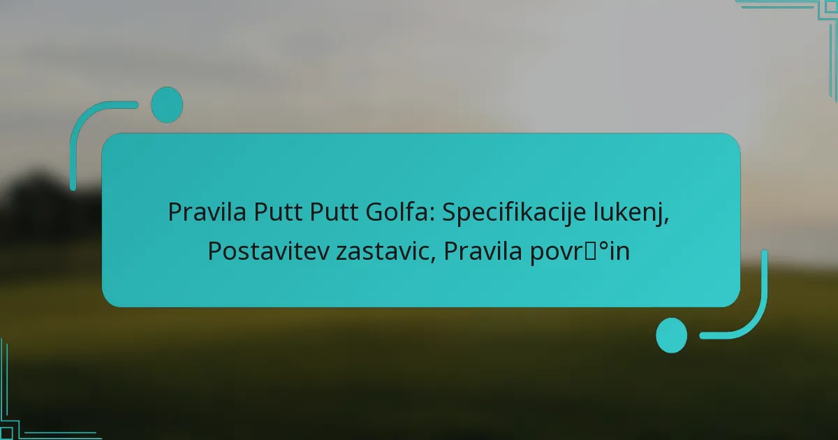 Putt-putt golf vključuje specifične specifikacije lukenj, ki ustvarjajo enotno igralno okolje, vključno s standardnimi dimenzijami in različnimi ovirami za povečanje izziva igre. Poleg tega je postavitev zastavic ključna za izboljšanje igranja, kar zahteva skrbno upoštevanje vidnosti in težavnosti. Pravila o površinah določajo materiale in prakse vzdrževanja, potrebne za zagotavljanje poštene igre in prijetne izkušnje za vse udeležence.